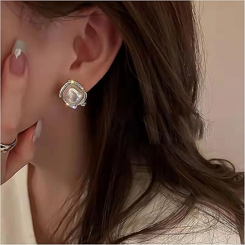 Vintage Crystal Square Earrings Moonstone Square Stud Earrings Gold Rhinestone Opal Stone Earrings Geometry Moonstone Earrings Jewelry for Women