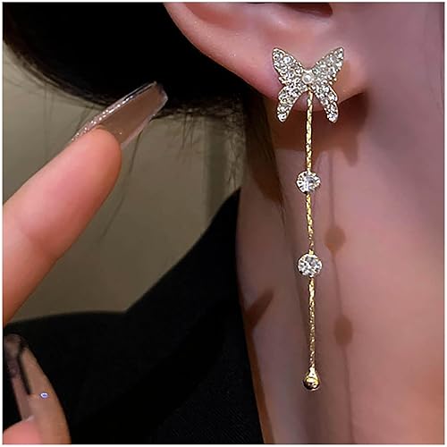 Vintage Crystal Butterfly Earrings Long Rhinestone Dangle Earrings Gold Chain Tassel Earrings Cz Butterfly Stud Earrings Jewelry for Women