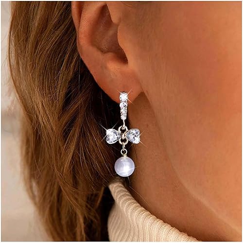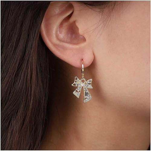 Vintage Crystal Bow Drop Earrings Gold Rhinestone Stud Earrings Pearl Bow Hoop Earrings Sparkly Cz Bow Earrings Jewelry for Women