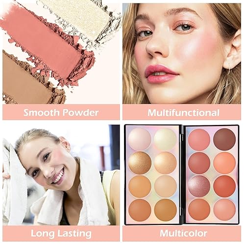 【16 Colors Multi-Functional Makeup Palette 】This 16-Color Blush Palette includes 8 blushes, 4 highlighters, and 4 bronzers,rich & versatile colors offering shades for every skin. Perfect for blush for cheeks, contouring, and highlighting, it’s your all-in-one solution for natural or sculpted looks