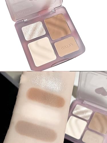 1 PC Gellas 4 Color Facial Highlighter Contour Palette, 4 Color Multi Purpose Silky Shimmer & Matte Facial Highlighter Contour Palette (02#, 10g)(01#,0.35 Ounce (Pack of 1))