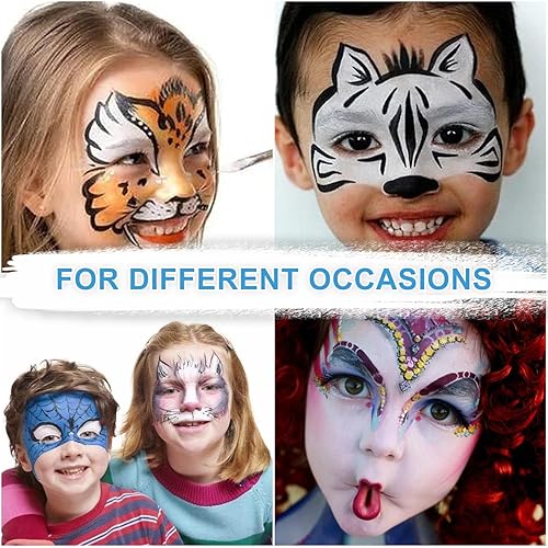 【Suit for Many Occasions】This facepaint makeup kit professional can help you create the unique design on your body. Can be widely used for festivals, carnivals, birthdays, campfires, theme parties, Christmas, Halloween and birthday parties or other festivals.