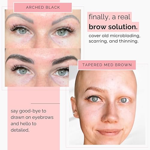 NATURAL, HAIR-LIKE DEFINED STROKES - Incredibly detailed and realistic-looking, Brows by Bossy eyebrow tattoos instantly create natural and full eyebrows with your ideal shape. Easily adjust our brows for your perfect color match with your favorite eyeshadow or pencil. You can actually see the individual eyebrow hair strokes in every brow tattoo. Great for Alopecia, Thyroid conditions, and a wide array of reasons for eyebrow loss. We've got your brows covered, literally.