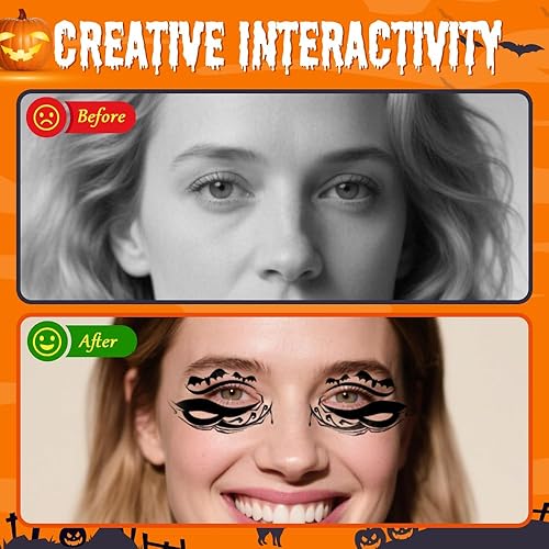 Halloween Decoration Kit: You will get 20Pcs/10pair eyeshadow stickers for Halloween party face eye makeup tool with Individually packaged box,and assorted styles will add much fun to your theme party, costume party, etc
