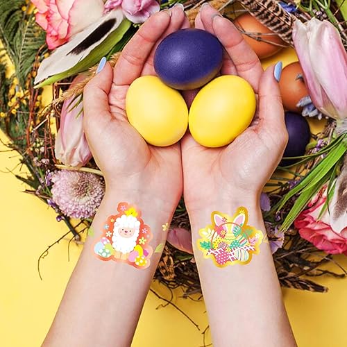 Easy to Use: Choose the one you like,remove clear plastic film, press it face down on your skin, wet the temp tattoo with water and wait for 10 seconds. Then gently tear off the white surface, you will get a Easter tattoo