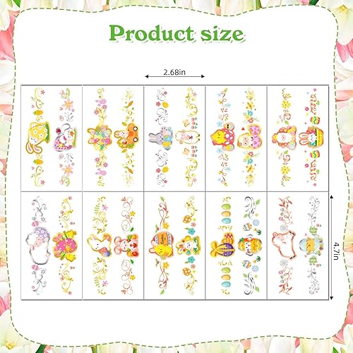 10 Sheets Easter Temporary Tattoos Easter Egg Bunny Fake Tattoos for Boys and Girls Easter Party Supplies