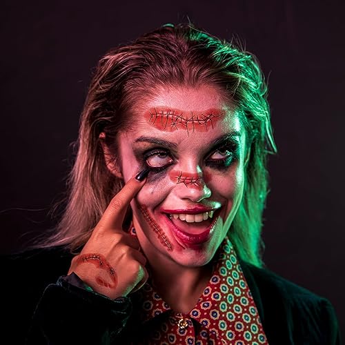 HORRIFYINGLY REALISTIC DESIGNS: Elevate your Halloween makeup with these gruesome designs. The gory wounds, realistic stitches, and chilling scars are sure to turn heads and give even the bravest a start. Perfect for adding an element of realism to zombie or survivor costumes.