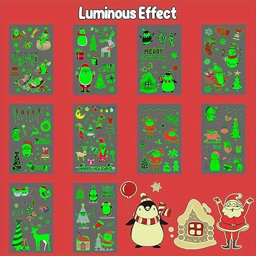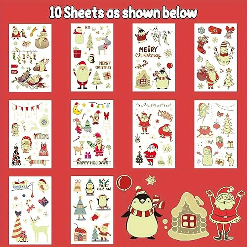 10 Sheets Luminous Merry Christmas Temporary Tattoos for Goodie Bags Stuffers,Fake Tattoos Stickers, Christmas Party Decorations Supplies Favors