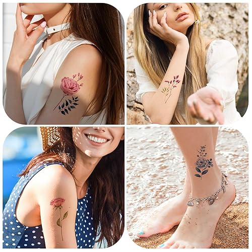 Flower Temporary Tattoos for Women Girls: 10 sheets watercolor floral tattoo design for women girls in one package, size is 4.13*2.36 inch, pattern include rose, peony, chrysanthemums violet and various types of flowers.