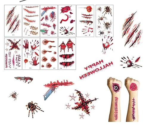 【Easy to Apply】Spooky Halloween Tattoos Bulk Pack with durable and waterproof material, Fake scar tattoos can last for 2-3 days. fake tattoos are very easy to use and can be easily removed with baby oil, makeup remover, cleansing oil or rubbing alcohol.