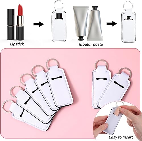【100 Pcs Sublimation Blanks Bulk】: With 100 pieces included, our lip gloss keychain holder set offers ample quantity for all your crafting needs, making it a practical and stylish accessory