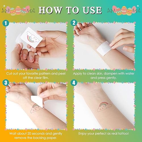 Versatile use - The kids tattoos can be used not only for Easter but also for birthday parties, costume accessories, gift exchanges, gift bag fillers, school prizes, stocking fillers, festive body decorations and more.