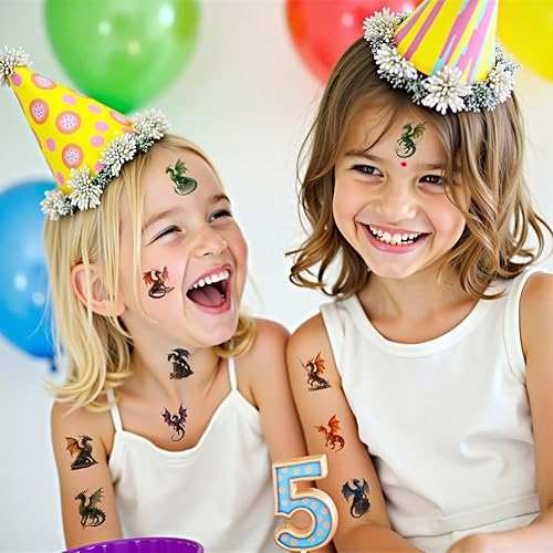Easy Application & Removal: The colorful dragon party fake temporary tattoos decorations for kids are easy to use. Simply cut the design, press with a damp cloth for 15 seconds, then peel off the backing. Remove gently with baby oil or makeup remover. Does not affect the skin and leaves no residue