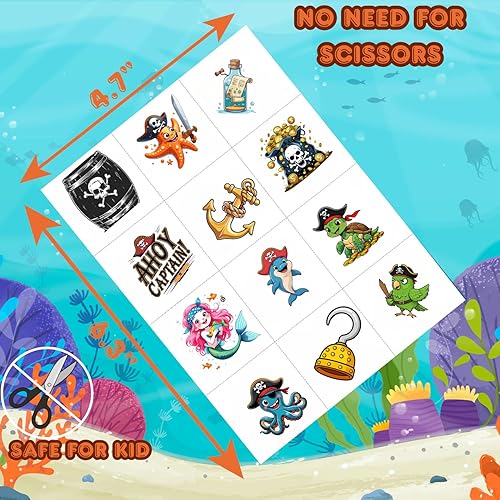 Perfect for Pirate Ship Nautical Mermaids Treasure Anchor Birthday Party Decorations Supplies & Events: Great for themed party, birthday activities, school reward and other party events. This tattoos stickers can be applied on arms, hands, face, neck, shoulders,... to make you look cool at all kinds of party. Popular hit with your kids. You can apply them to your body or some smooth objects, for example, glass, laptop, paper, cups, bottle,..