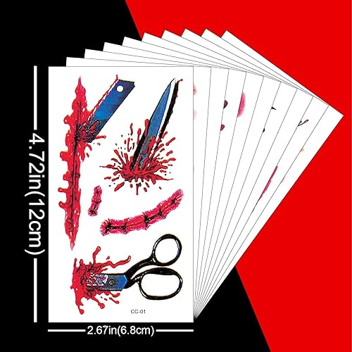 REALISTIC APPEARANCE: Highly detailed wound designs with vivid red coloring and precise line work for an authentic Halloween makeup effect