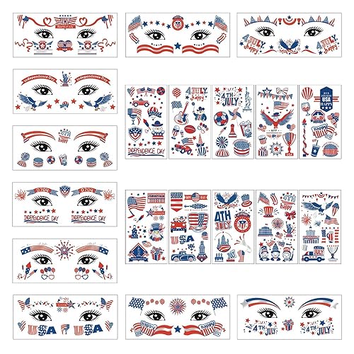 American Flag Face Tattoos: ASDIIT 4th of July face stickers burst with patriotic designs—flags, stars, “4th JULY” motifs, and more. Effortlessly elevate your look for Independence Day celebrations, instantly infusing festive charm into your face.