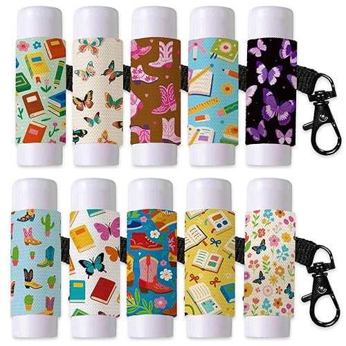 Package content: There are 10 lipstick key chains in total. The size is about 55mm wide and 45mm long. The number is rich to meet your daily replacement and use needs. The top and bottom open design is more convenient for use, and suitable for lipstick of different sizes