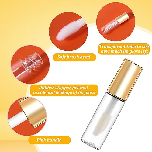 Leak-Proof & Safe Design: Each empty lip gloss tube with brush features a secure, leak-proof design with a rubber insert to prevent air ingress and unwanted spillage. Your lip gloss is safely stored, whether at home or on the go.