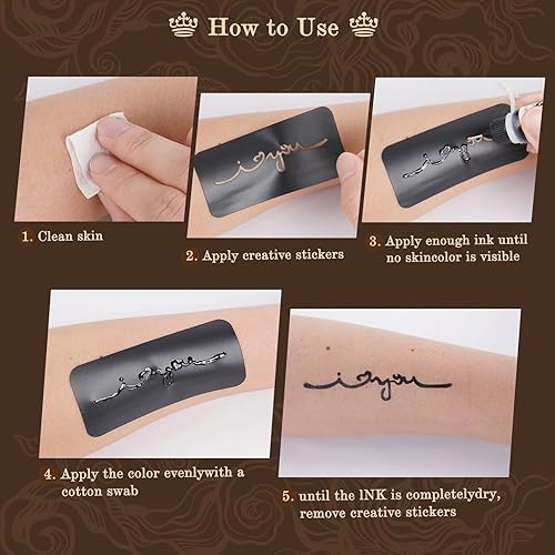 Easy to Apply: Achieve professional-looking tattoos in minutes! Simply place the self-adhesive stencil, color in the design with ink, and let it dry. No pain, no mess—enjoy beautiful temporary body art.