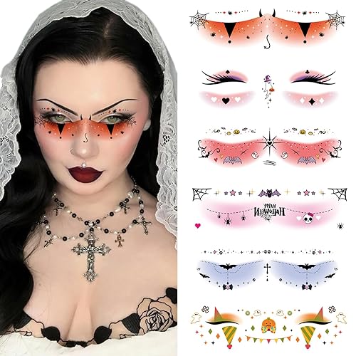 Package Includes: You will get 12 Sheets waterproof Halloween face eyeshadow tattoos with different designs, match it with Halloween costumes, Halloween fancy dress, which are perfect suitable for Halloween Celebrations coming