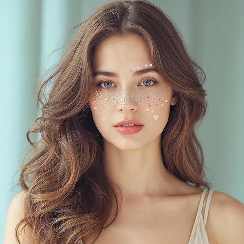 【Colorful Design】Our colorful glitter freckle tattoos are made with hot laser technology, which has amazing color combinations under light, adding vitality and charm to your makeup. Whether it's a festival, party or daily wear, these tattoos will make you stand out.