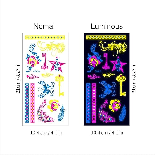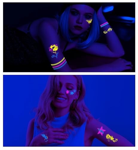 Perfect for Rave Festival: These glow in the dark tattoos are perfect for various occasions, such as Halloween makeup, costume parties, concerts, festivals, punk party, club, carnival, traveling, wedding, dancing, swimming the beach, vacations, pool, beach, dinner dress,music festival, night out, etc.