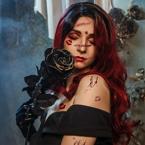Comment on "12 Sheets Red Lip Fake Scar Blood Face Temporary Tattoos Stickers Fake Kiss Wound Stitch Scar Scab Waterproof Horror Zombie Sticker for Halloween Party Makeup Valentines Cosplay Accessories"