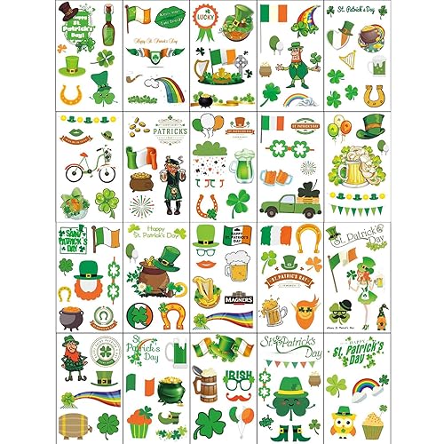 St Patricks Day Tattoos: Elevate your St. Patrick's Day celebration with our extensive collection of 10 sheets of exquisitely designed st patricks day face tattoos. Each st patricks day temporary tattoos is a treasure trove of unique designs, ensuring a wide variety to choose from. With such an abundance, these st patricks day accessories are perfect for sharing the festive spirit with friends and family, making your St. Patrick's celebration a memorable one.