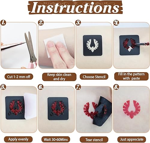 Comment on "128 pcs Temporary Stencils Tattoos Kit, 8 Pcs Tattoo Cones 3 Color (2 Black 3 Maroon 2 Cherry Red) with Gloves Brush Tool,DIY Body Art Skin Painting Designs for Adults Kids Party Gifts"