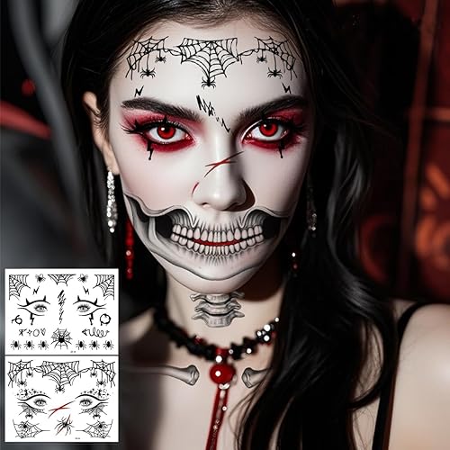 Design: Our Halloween face tattoos, including skeleton face tattoos, mouth, bat, spider web and skull Tattoo, feature a variety of creative and stylish designs that are suitable for Halloween costumes