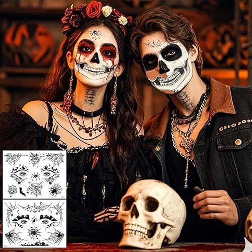 Comment on "14 Sheets Halloween Face Eye Shadow Temporary Tattoos Day of the Dead Skull Spider Web Bat Skeleton Mouth Eyeliner Eyeshadow Tattoos Makeup Kit for Women Halloween Masquerade Carnival Party"