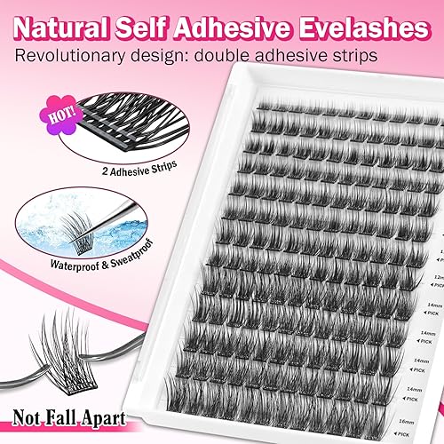 Comment on "156 PCS Volume Self Adhesive Eyelashes Clusters, Invisible 2-Strip Tape - Longer Lasting, Pre Glued Eyelash Clusters, No Glue Needed Lashes C-Curly Eyelash Clusters with Tweezers(1 Step-Press on Volume)"