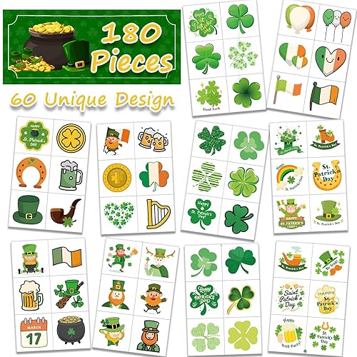 Exceptional Value & Quantity: Get a huge variety with 156 kiss prints in vibrant colors and 180 shamrock designs (60 patterns), providing incredible mix-and-match potential for individuals and large groups without breaking the bank.