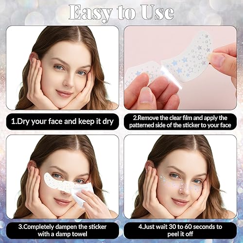 Easy to Use: Just peel off the backing, stick the face glitter sparkle freckles on clean skin, press with a wet tissue for 20-30 seconds. Let you have a stunning look in minutes without any hassle.