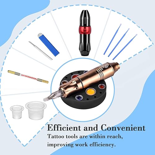 4. 【Ink Cup Holder】Two design of holders for you. Different sizes of holes can display different size of ink cups. The 12 holes ink cup holder can rest your tattoo pen machine too. Keep your tattoo working area clean and orderly.