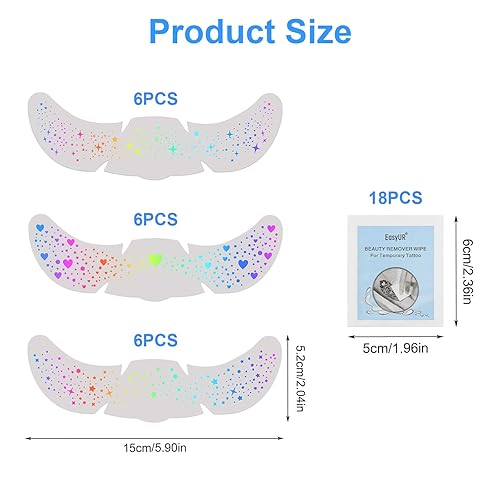 Package Content: Set includes 18pcs holographic multicolor freckle stickers and 18 tattoo sticker remover wipes. Crafted with skin-friendly materials, these stickers are safe for daily use and won't irritate sensitive skin. Everything you need for easy application and removal is included.