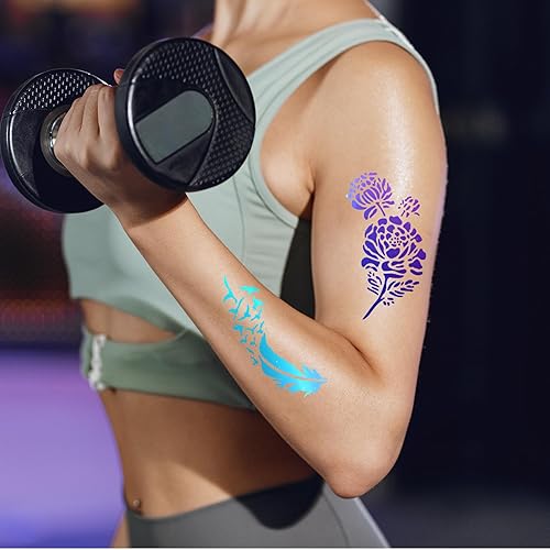 Easy to Use - The body art stencils are adhesive and removable, just find the one you like and stick it on your body, and fill in the hollow, and then tear off it, done!