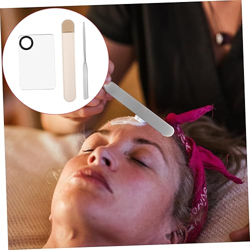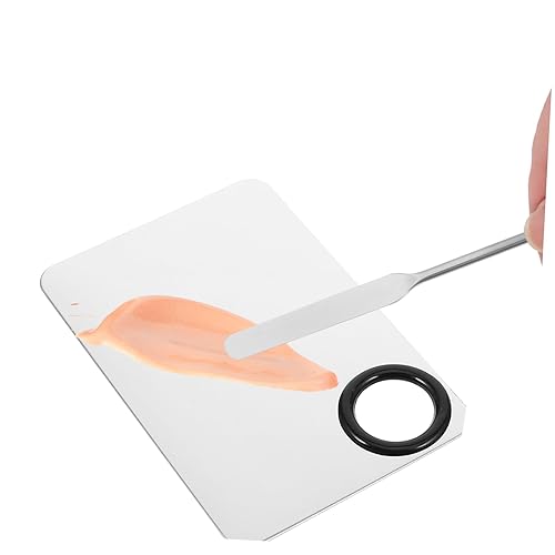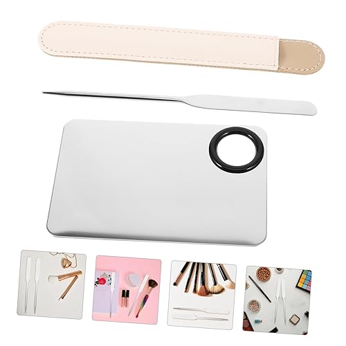 1set Handle Stainless Steel Cosmetic Spatula Mixing Plate Makeup Foundation Mixing Tool for Home and