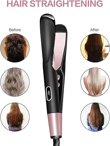 【Fit for All Hair Types】The Flat curling iron with 12 variable temperature settings 120-230C and LCD digital display, which fits for all hair types well(LONG, SHORT, THICK, NATURAL and FINE/THIN Hair)