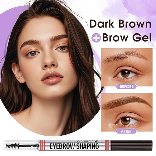 2-in-1 Eyebrow Pencil with Brow Gel: Dark Brown, for Grooming & Shaping Eyebrow, Waterproof, Ultra-Fine 4 Micro-Fork Tip, Clear Smudgeproof Gel for Long Lasting Results, M-DX-X0(Makeup-Pen+Gel)