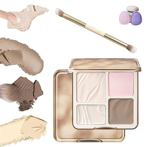 2 IN 1 Highlighter Contour Palette, 4 Color Facial Highlighter Contour Palette, Face Highlight ContourPalette, Lasting Sparkling Non-Greasy, Sculpt the Face Makeup (Powder tone-#04)(cool skin-#01)