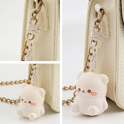 2 in 1 Keychain Bear Lip Lipstick Moisturizing Hydrating Lip Gloss, Cute Little Bear Lip Balm, Anti-dry Anti-crack Lipgloss, Lip Care Lip Repair Stick, Portable Fruit Flavored Lip Gloss (Honey peach)(Apple,3.2g)