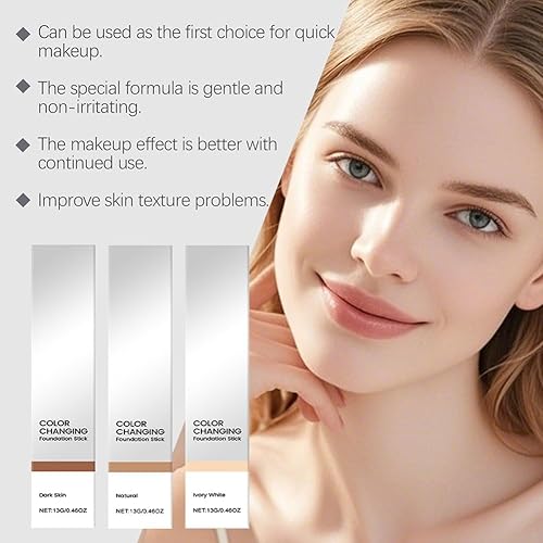Compact Size:You will get 2 color changing foundation sticks,each net capacity 13g/0.46 oz;This compact, travel-friendly stick is leak-proof and designed for quick and clean touch-ups anytime, anywhere—all without extra tools or heavy packaging. Ideal for travel and touch-ups, so your flawless look stays perfect anywhere