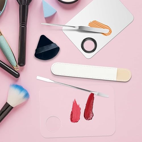 Two Materials: The stainless steel spatula brush makeup has a smooth surface and a small size, which is convenient for you to carry when you go out. The acrylic makeup plate is larger in size, suitable for having enough space at home to mix various cosmetic colors. Its transparent design allows you to adjust the foundation color similar to your skin color. Whether you need fine color mixing or large-area application, makeup spatula can meet your needs.