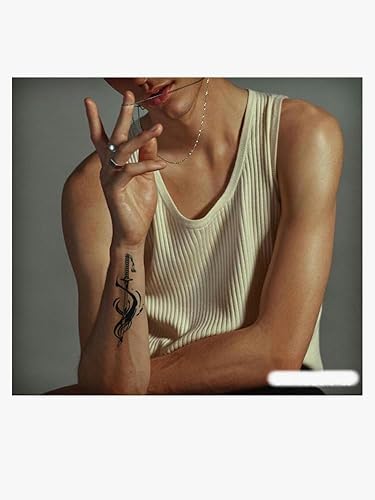 How to use: Simply place the fake tattoo sticker on your skin and hold it with a wet sponge for about 15 seconds, then remove! The color will appear lighter at first but will gradually darken over 24-48 hours.