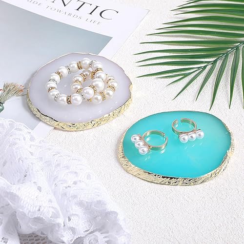 2 Pcs Resin Nail Art Palette, Nail Polish Color Mixing Palette Gold Edge Makeup Color Pallet Nails Display Board Mixing Tray for Makeup Nails Art (White, Blue)