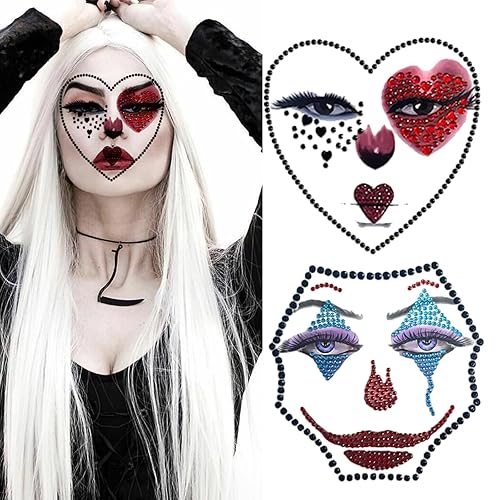 2 Pieces Spades A Heart Face Gems Makeup Tattoo Stickers Self Adhesive 3D Rhinestone Jewels Glitter Tattoo for Women men Party decoration