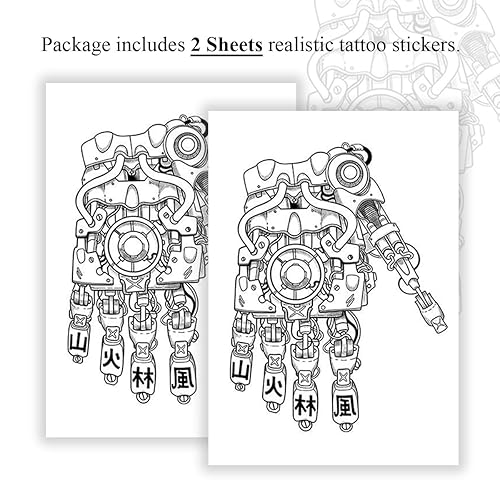 The tattoo sticker is suitable for both men and women. Unique Mechanical Hand pattern, Machinery Futuristic style are perfect for anyone who wants to add a touch of futuristic flair to their style.