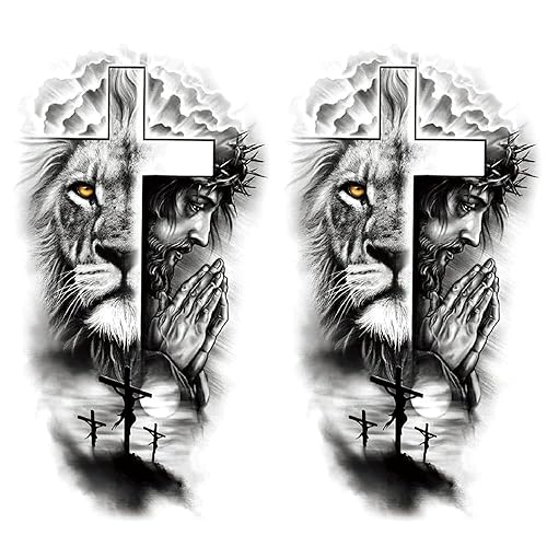 2 Sheets Temporary Tattoos Stickers Jesus Cross Religion Old School Designs For Men Waterproof Arm Leg Fake Body Art, Gym & Parties Bold Masculine Decals(ZEN-120)