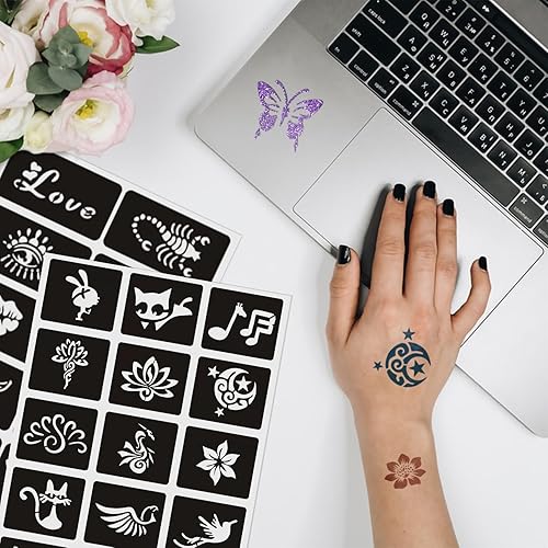 Comment on "20 Sheets Temporary Tattoo Stencils for Women Girls and Kids, 727 PCS Henna Tattoo Stencil Kit,Temporary Indian Arabian Glitter Airbrush Tattoo Stencils for Face Body Paint DIY"